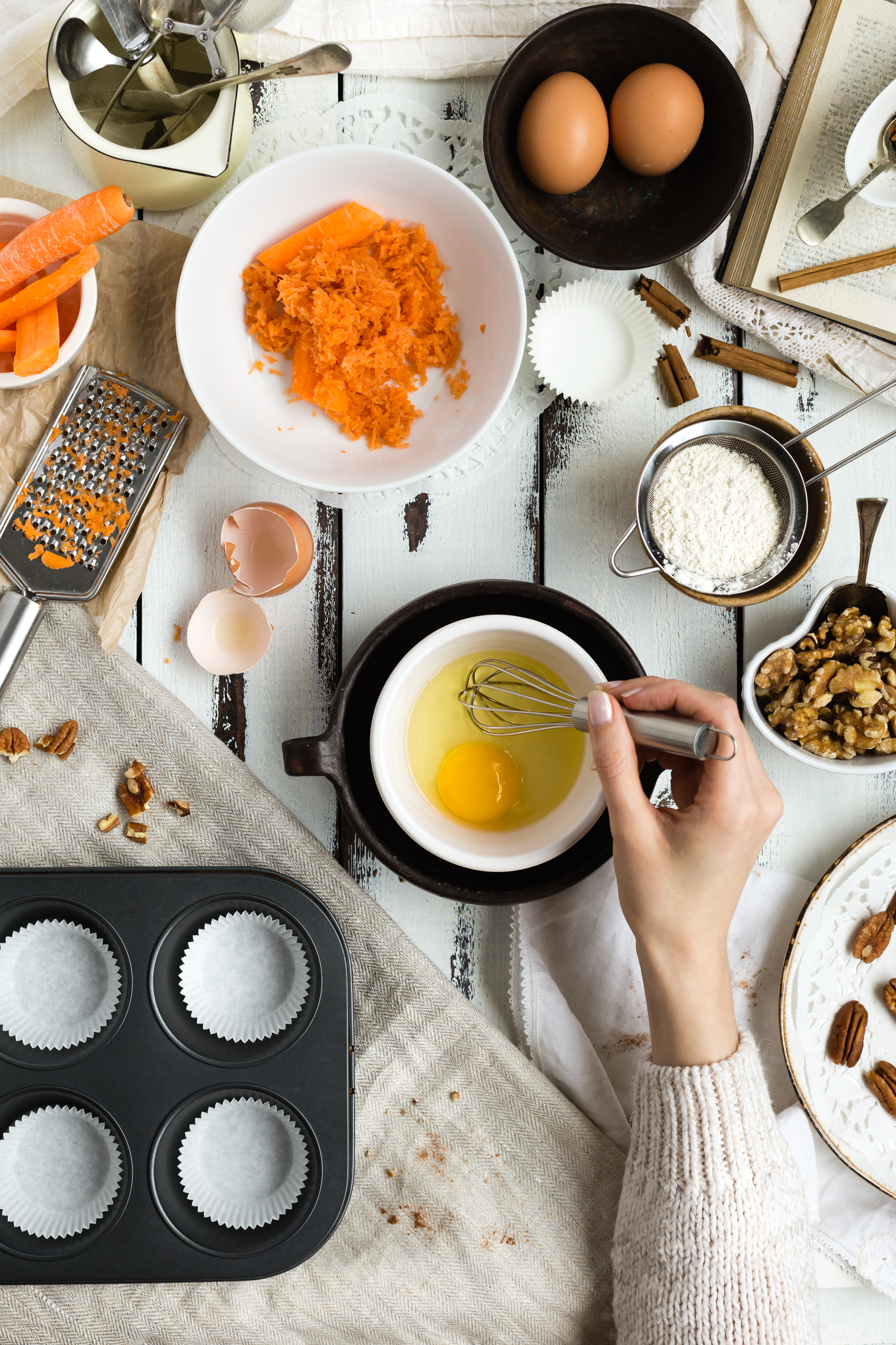 - Bland inn olje og revet gulrot.