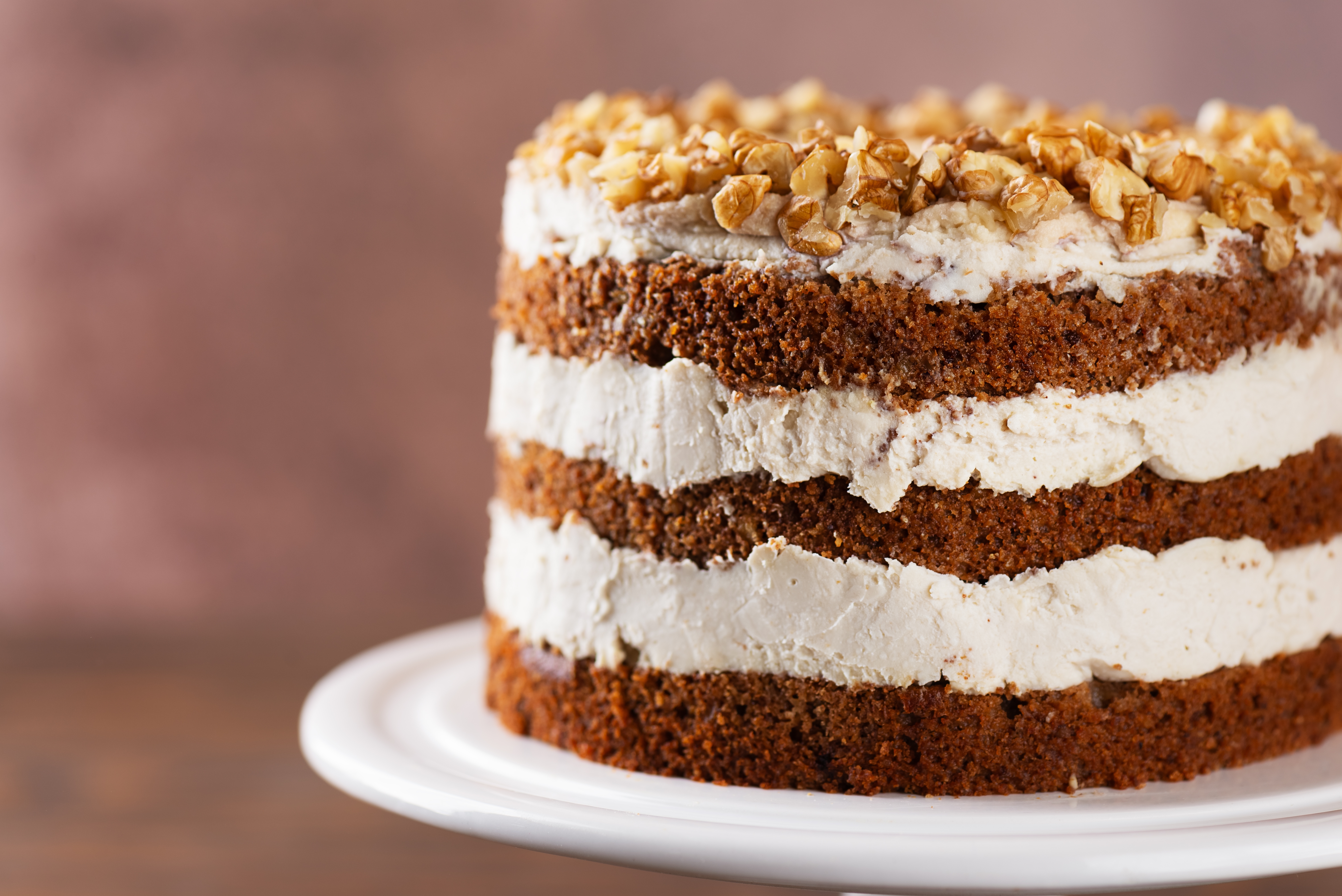 Denne varianten har en saftig tekstur og en rik smak takket være kanel, muskat og ikke minst sprø valnøtter. Valnøttene gir ikke bare en nydelig nøtteaktig smak, men tilfører også knasende kontrast til den myke kaken.